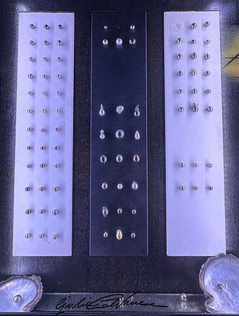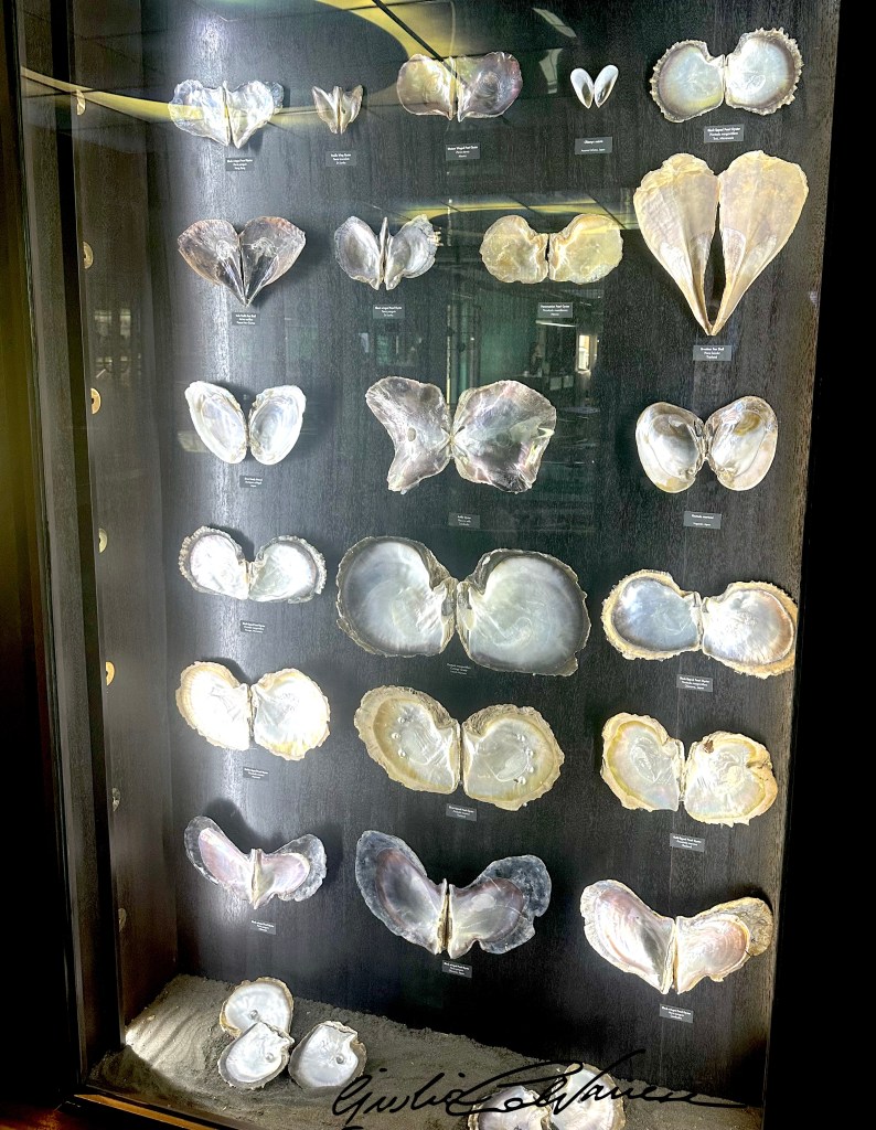 La parte storica invece racconta come, nei secoli, le perle siano state considerate gemme preziosissime perché uniche più che rare, e siano state impiegate nella fattura di nobili monili o nella creazione di oggetti di lusso. Teste coronate e alti borghesi hanno sempre fatto a gara per poterle avere nella propria collezione di gioielli, tanto che, attualmente, le perle naturali, non coltivate, frutto quindi del puro caso (un granello di sabbia, un parassita o altro che entra nell’ostrica in modo aleatorio), sono praticamente introvabili. Molti banchi perliferi naturali sono stati completamente esauriti dall’uomo, come quello dei Caraibi o quello del Bacino Persico, e negli anni tra le due guerre mondiali, l’ostrica perlifera ha rischiato l’estinzione a causa delle folli raccolte da parte dell’uomo che non si curava di tenere in vita l’animale. La perlicoltura, con il suo impegno nel proteggere le ostriche fin dal loro primo stato di larva, ha di fatto salvato questi molluschi. Per i più preoccupati, un video di una decina di minuti, presente nella parte scientifica del museo, spiega in modo esaustivo come l’ostrica non muoia nel processo di innesto del nucleo della gemma all’interno dell’animale e in quello successivo di raccolta del risultato, ma come piuttosto venga trattata con riguardo e cura proprio per la sua capacità di creare perle stupende.