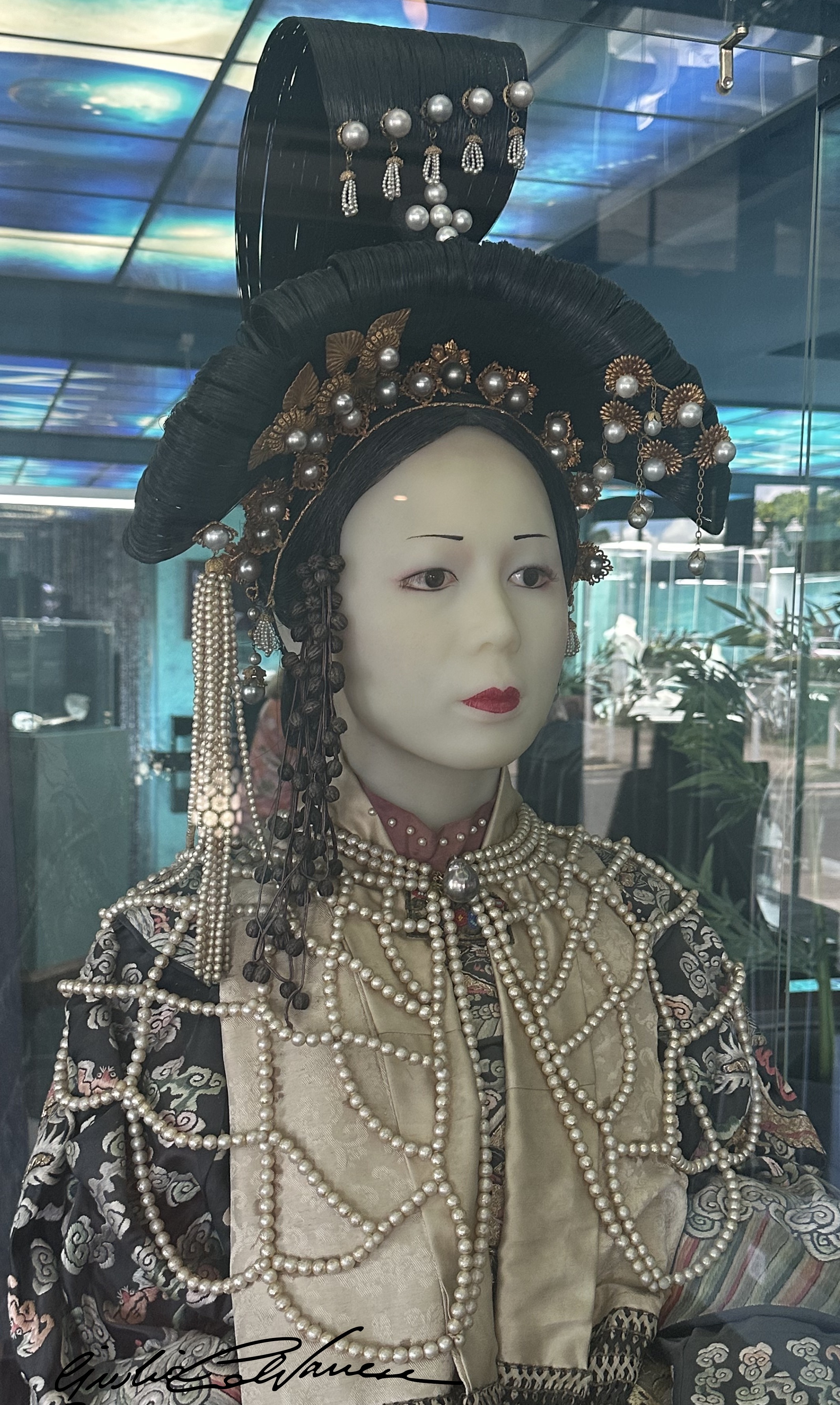 Personalmente ho iniziato la visita dalla parte scientifica, molto ben esposta, con panelli in francese ed inglese, e particolarmente interessante. Sono rimasta affascinata dalla grande teca che mostra le specie diverse di ostriche da perla: sembrano tante meravigliose farfalle dalle ali di madreperla. Ho scoperto inoltre che non solo le ostriche sono in grado di creare perle, ma ci sono tanti altri molluschi che le fabbricano al loro interno come difesa naturale da un agente invasivo. È proprio così che nasce una perla, e pensate che bella metafora della vita: qualcosa di estraneo, di “altro da sé”, che si presenta inizialmente come invasore, viene trasformato in qualcosa di splendido e arricchente. Io ci vedo il rimando alle esperienze che ognuno di noi fa nella vita, siano esse belle, complicate, difficili o memorabili, possono tutte essere trasformate in qualcosa di particolare, splendente e dai mille riflessi. Verrebbe da dire: “nella vostra vita, siate come le ostriche!”, non per tenervi il vostro tesoro e non concederlo a nessuno, ma piuttosto per trovare la stessa forza di crearlo e poi mostrarlo al mondo con tutti i suoi colori. La perla è il frutto di un’elaborazione interna, di un processo vitale. Viene considerata l’unica gemma “viva”, perché nella sua formulazione vi sono proteine e una piccola percentuale di acqua, che deve essere sempre mantenuta, pena la morte della perla stessa, che ingiallisce e si crepa se non curata e indossata.