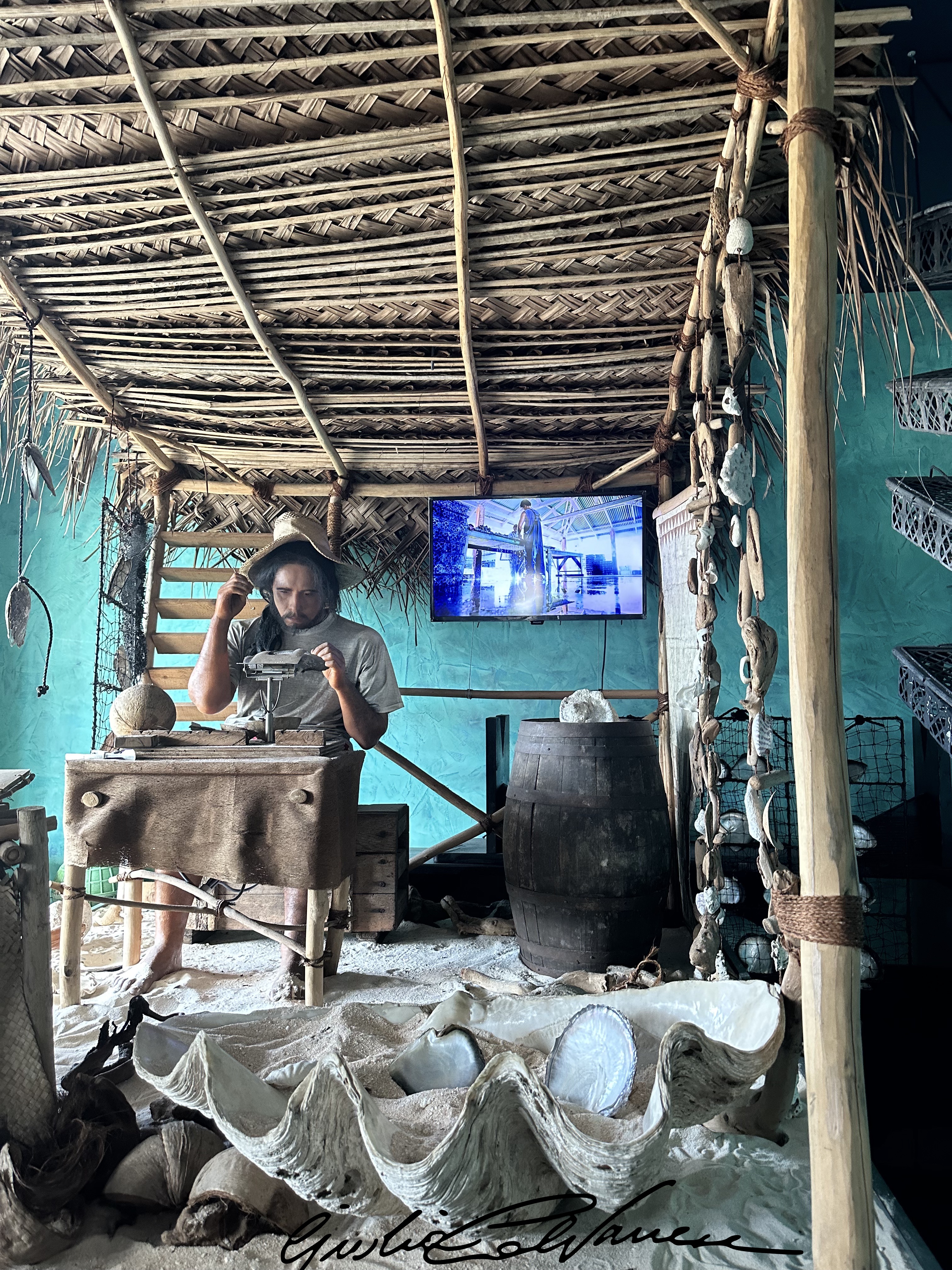 La parte storica invece racconta come, nei secoli, le perle siano state considerate gemme preziosissime perché uniche più che rare, e siano state impiegate nella fattura di nobili monili o nella creazione di oggetti di lusso. Teste coronate e alti borghesi hanno sempre fatto a gara per poterle avere nella propria collezione di gioielli, tanto che, attualmente, le perle naturali, non coltivate, frutto quindi del puro caso (un granello di sabbia, un parassita o altro che entra nell’ostrica in modo aleatorio), sono praticamente introvabili. Molti banchi perliferi naturali sono stati completamente esauriti dall’uomo, come quello dei Caraibi o quello del Bacino Persico, e negli anni tra le due guerre mondiali, l’ostrica perlifera ha rischiato l’estinzione a causa delle folli raccolte da parte dell’uomo che non si curava di tenere in vita l’animale. La perlicoltura, con il suo impegno nel proteggere le ostriche fin dal loro primo stato di larva, ha di fatto salvato questi molluschi. Per i più preoccupati, un video di una decina di minuti, presente nella parte scientifica del museo, spiega in modo esaustivo come l’ostrica non muoia nel processo di innesto del nucleo della gemma all’interno dell’animale e in quello successivo di raccolta del risultato, ma come piuttosto venga trattata con riguardo e cura proprio per la sua capacità di creare perle stupende.