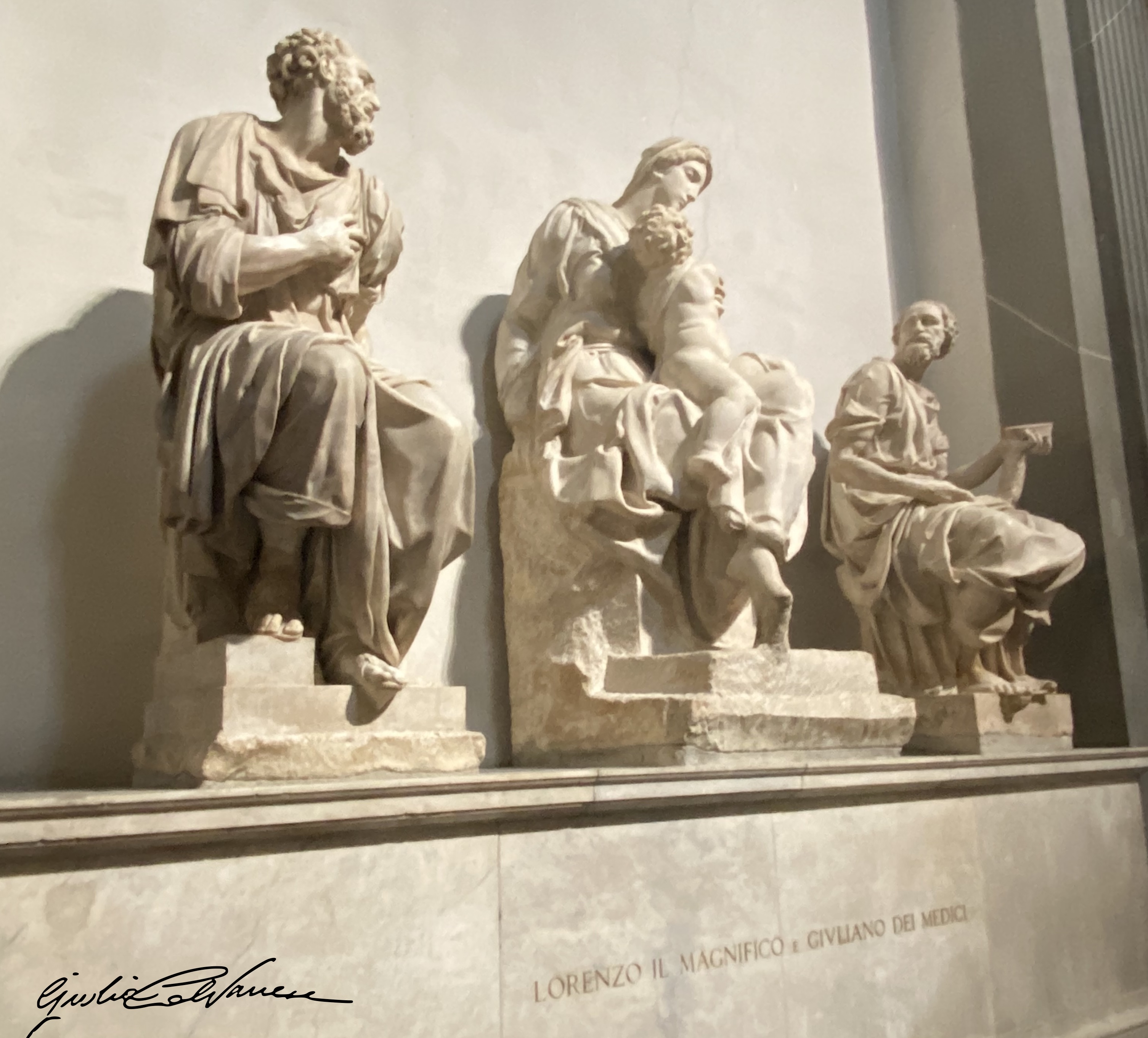 Questo è cambiato. Questo manca ai nostri tempi. E non manca solo ai potenti, manca a tutti, siamo caduti dalla consapevolezza di questa nostra umile piccolezza alla ricerca spasmodica di essere altro e innarrestabilmente meglio. Anche noi però condivideremo un destino naturale simile al Magnifico, solo che lui, sulla sua tomba ha una statua di Michelangelo, noi invece sogniamo di clonarci o congelarci per non morire e non avere mai una statua sulla nostra tomba, fosse anche scolpita da Michelangelo in persona, resuscitato o clonato pure lui a partire dai suoi resti. Cos’ è meglio? Vivere nell’umile incertezza creatrice del Magnifico o di Michelangelo (cfr articolo precedente sul David), o sopravvivere nella superbia infeconda facendo finta di essere invincibili e immortali?