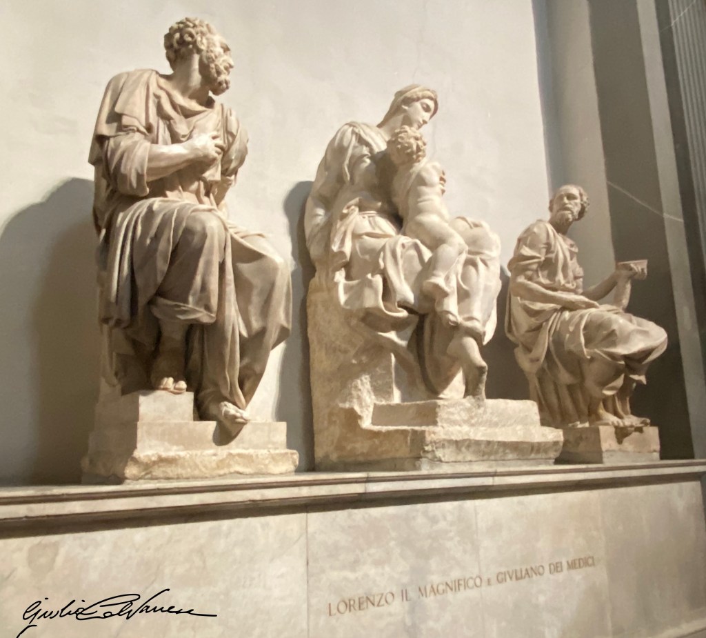 Chissà quale Volere Superiore, quale congiuntura cosmica o quale caso fortuito, portò allo sbocciare di un’arte completamente diversa dalla precedente, in quel determinato periodo storico, in questa città. Doveva essere bella anche in epoca medioevale, Firenze, ma aveva anche lei subito i danni della peste, ce lo racconta Boccaccio, morte e tragedie… poi è rifiorita. E lo dobbiamo anche a delle personalità che con gli occhi giudicanti di oggi potremmo definire senza scrupoli, di una famiglia tra le altre, quella dei Medici. Non erano certo degli stinchi di santi, come chiunque a quell’epoca e come in fondo lo siamo anche noi, o perlomeno come lo sono personaggi di una certa rilevanza politica o economica. Sarebbe ora di toglierci gli occhiali del giudizio per renderci conto che la realtà è sempre la stessa, da secoli.