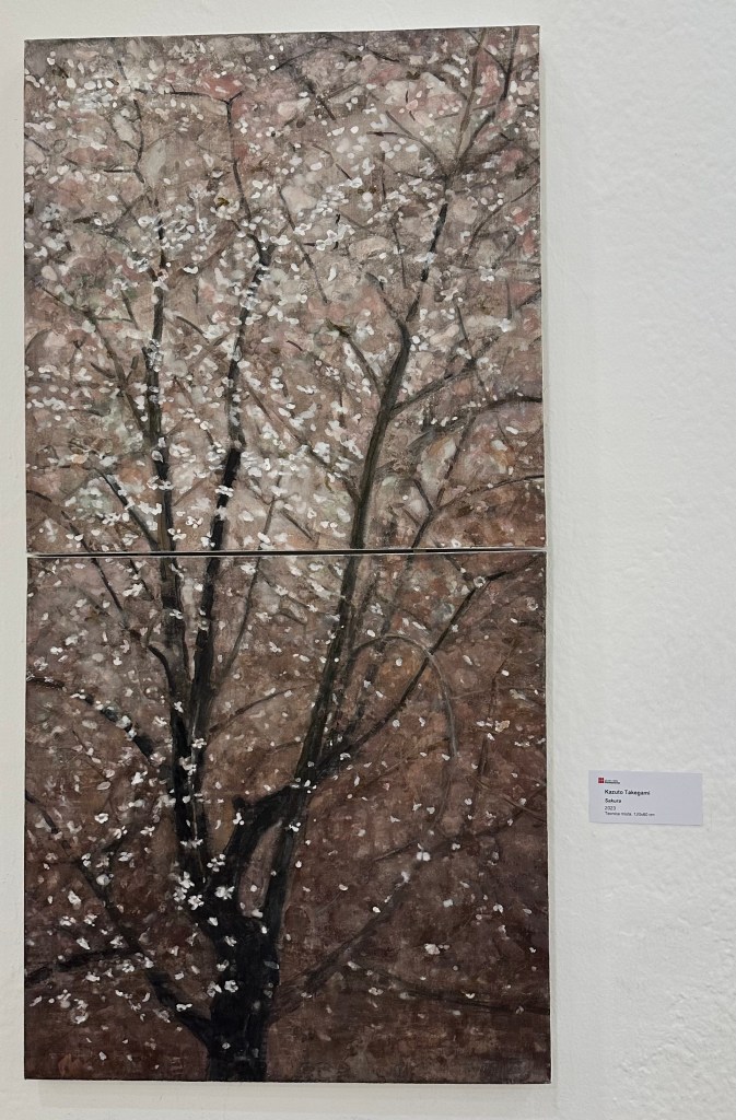 Quell’essenzialità che scorre sotto la superficie, Under the surface di Erika Bellanca. Siamo fatti di acqua e casualità incredibili, trasparenti e leggere; profondità di un mare Senza Titolo di Levijana Bjelan. Siamo come una cascata che cerca di ricomporsi, dando un senso a tutte le sue parti, una Broken Nature di Nadia Tognazzo, un continuo divenire. Siamo contenitori del nostro tutto, del nostro infinito. Infinito mare che a volte affronta burrasche o una Tempesta in un bicchier d’acqua di Roberta Rossi. Le onde ci travolgono interiormente, sembrano piccole di fronte ai problemi più ampi del mondo, eppure ne sono il riflesso. Con la tempesta, la guerra rompe gli equilibri, è caos, War di Edy Persichelli, tecniche diverse che si intrecciano in un vociare informe, lamenti, disaccordi ben lontani dalla pacifica e serena convivenza di Sakura.
